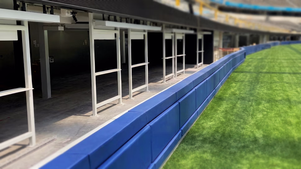 Working closely with designers and field engineers, Collins Co. developed a drink rail padding system using flush-mount hardware that locked securely in place—but could still be serviced or replaced when needed. Our padding team completed rapid on-site installs in sync with SoFi’s fast-moving construction schedule.